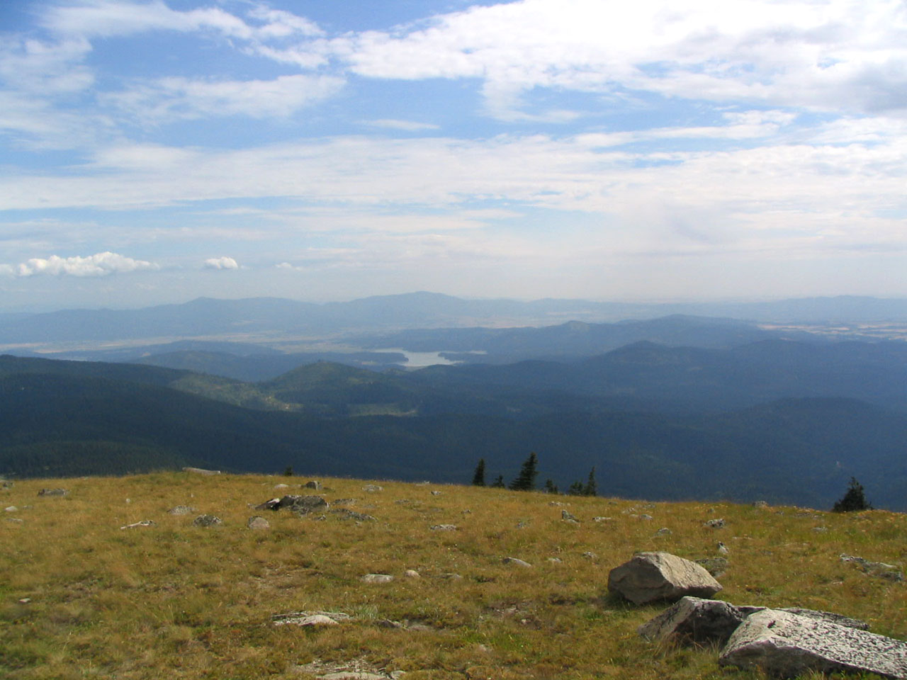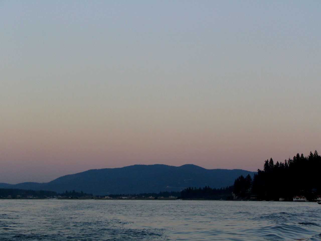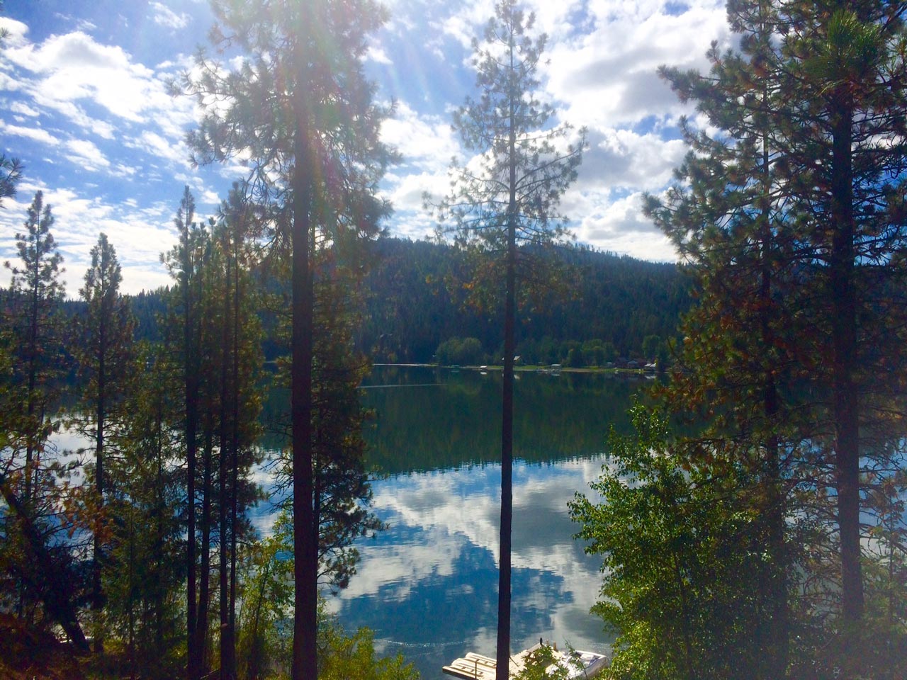 A closer view of Newman Lake as seen from the top of a mountain to the north.